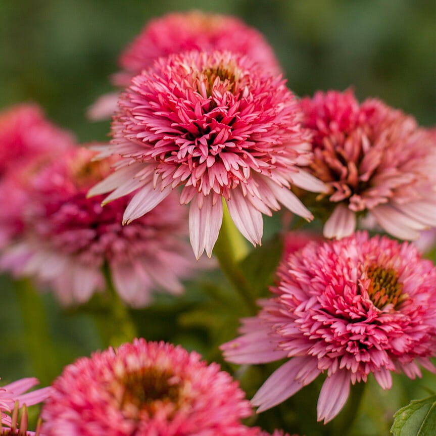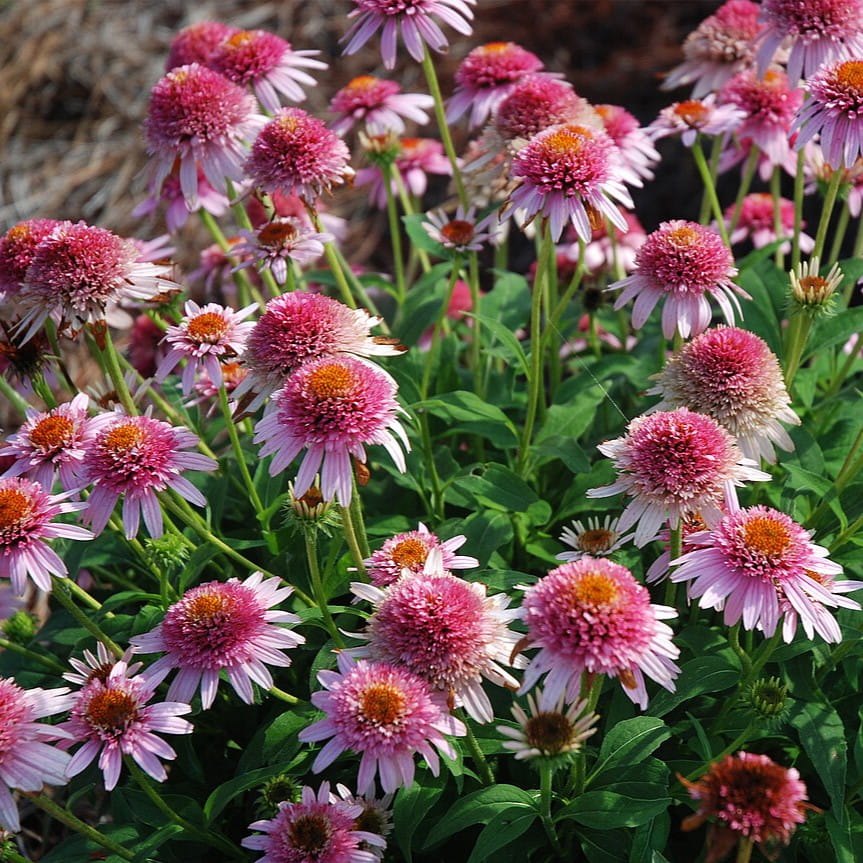 Jeżówka ‘Butterfly Kisses’ to niezwykle dekoracyjna, kompaktowa odmiana jeżówki hybrydowej, wyróżniająca się półpełnymi do pełnych kwiatami o intensywnie różowej barwie. Charakterystyczny, wypukły środek w formie pomponu nadaje kwiatom wyjątkowy, ozdobny wygląd, odróżniający tę odmianę od klasycznych jeżówek.