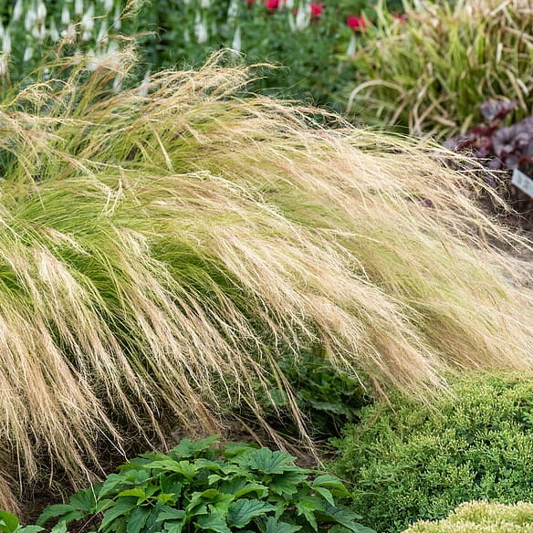 Stipa tenuissima ‘Pony Tails’ to niezwykle delikatna i efektowna trawa ozdobna, ceniona za swoje cienkie, jedwabiste liście oraz lekki, falujący pokrój. Przy najmniejszym podmuchu wiatru porusza się niczym miękkie włosy, wprowadzając do ogrodu dynamikę i naturalny charakter.
